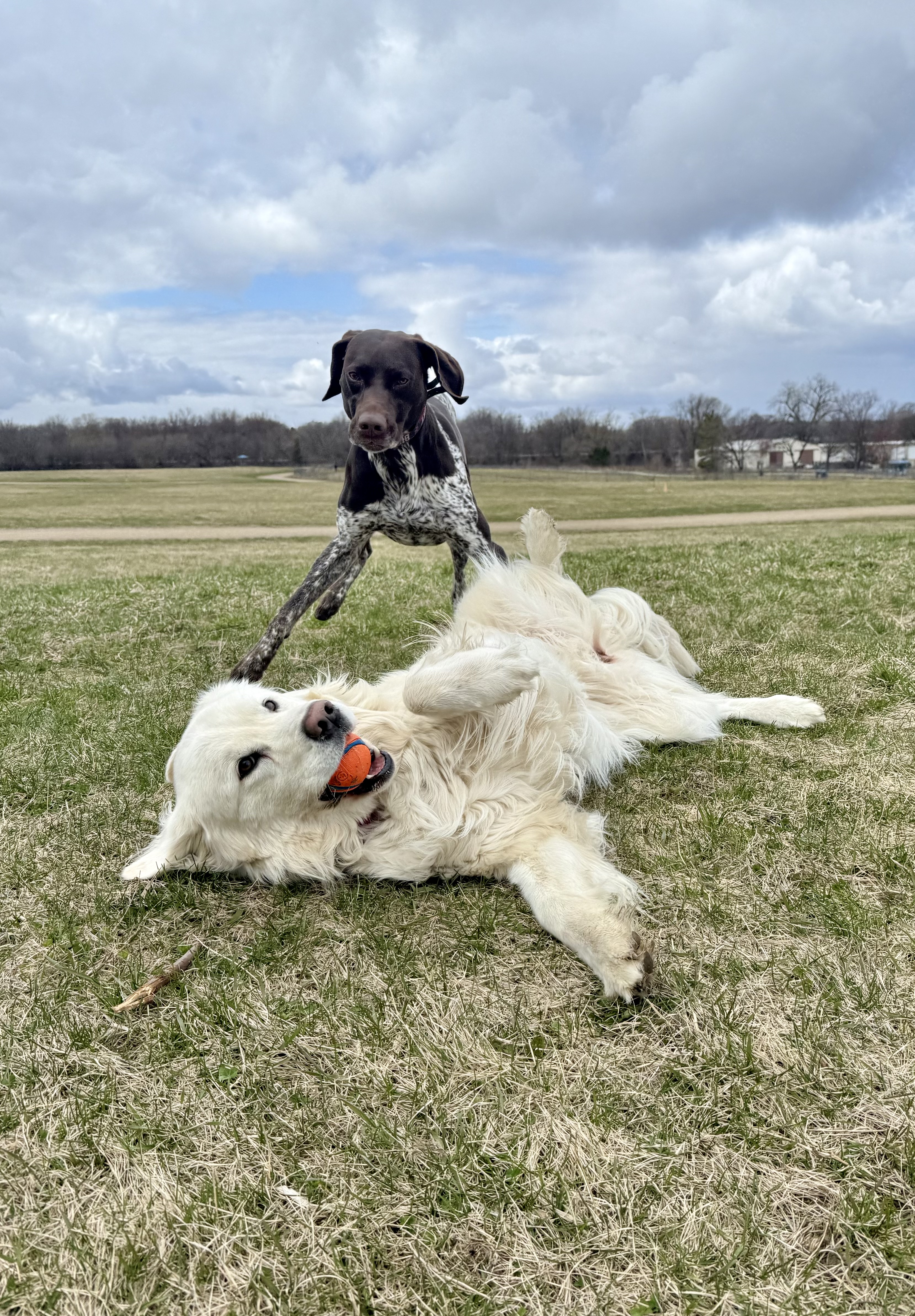 We pick up your dog to go play with friends at the dog park. We are gone at least an hour and take them to an off leash dog park so they can run and play! **must have valid dogpark tags and travel well in the car